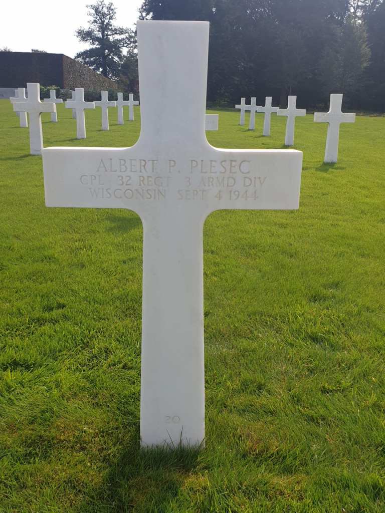 This past September, 2021, the Saukville Historical Society was contacted by Sonny Ver of Belgium, inquiring about a man named Albert Plesec. As a child, Sonny’s Grandmother told him the story of the day her village was liberated by the Americans during WWII, and of a soldier who hugged her and gave her a piece of chocolate. Unfortunately, the soldier was killed in an accident the very next day.