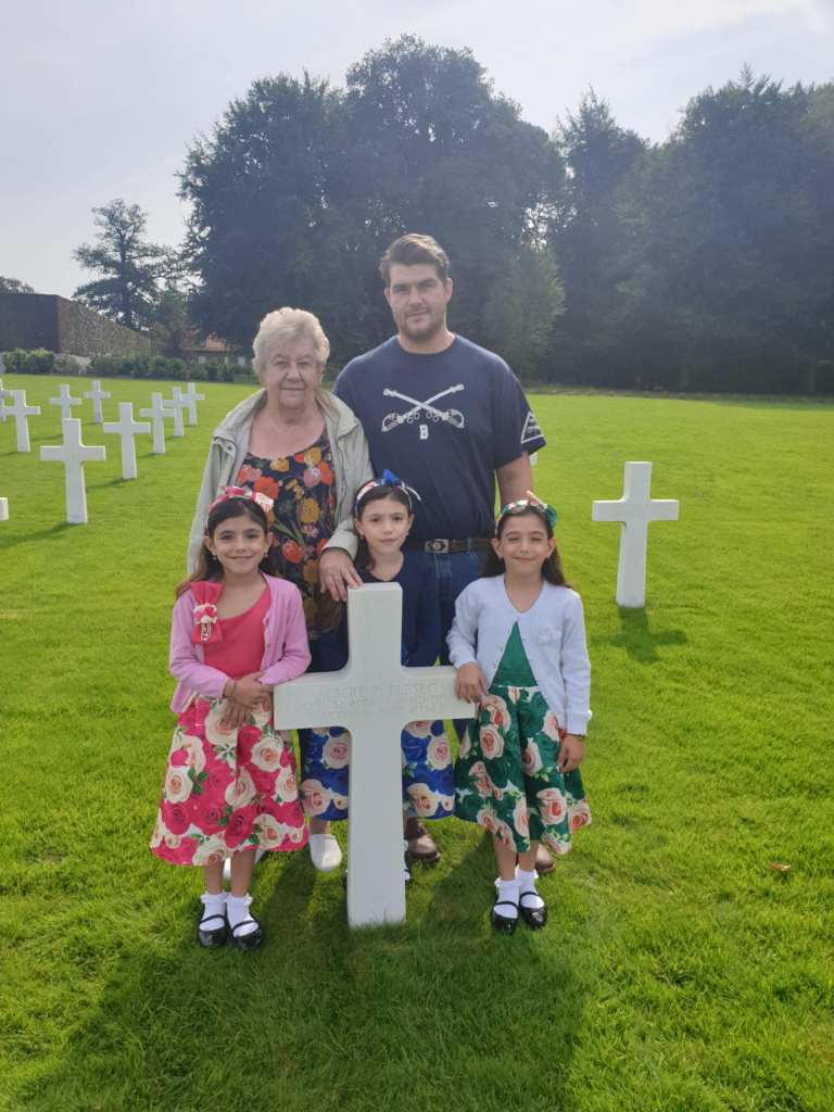 Sonny Ver, his grandmother (left) and his three daughters. Plesec gave Ver’s grandmother a hug and a piece of chocolate following the liberation of Binche, but was killed in an accident the following day.