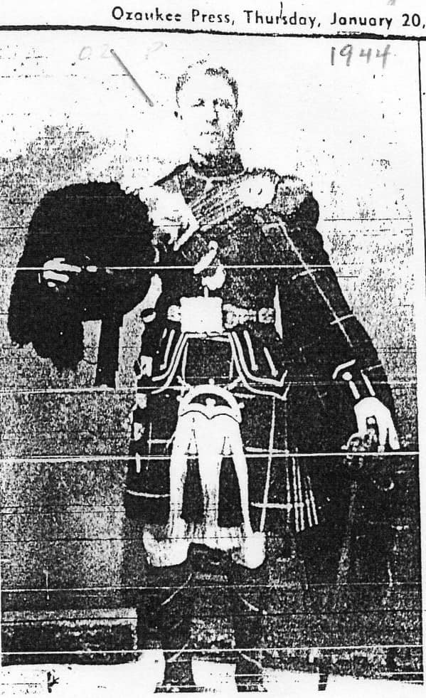 A souvenir photo of Cpl. Albert P. Plesec in Scottish dress, taken oversees during WWII and sent to his family in Saukville, was printed in the “Ozaukee Press.”